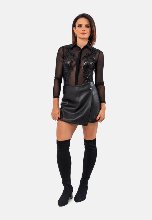 Vegan Leder Skort | Elegante Shorts mit Rock-Design in Schwarz
