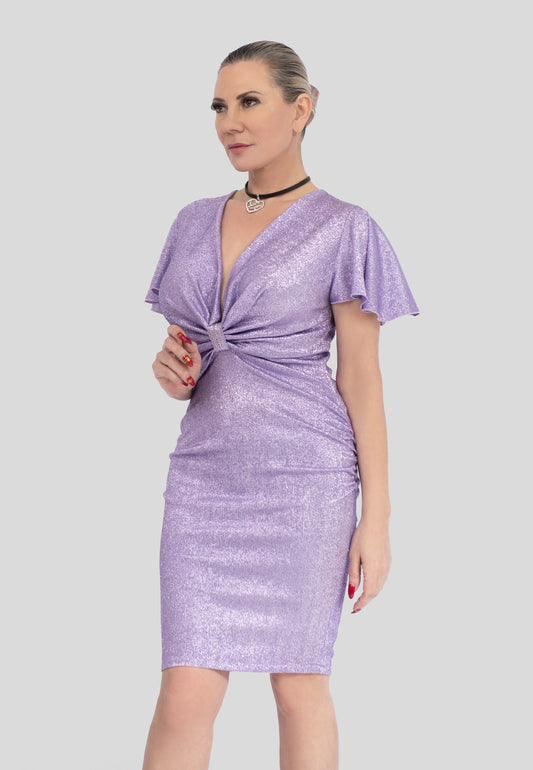 Cocktailkleid in Schimmerndem Lila – Elegantes Wickel-Kleid mit V-Ausschnitt