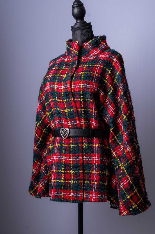 Damen-Tweed-Jacke | Klassisches Karomuster | Eleganter Cape-Stil