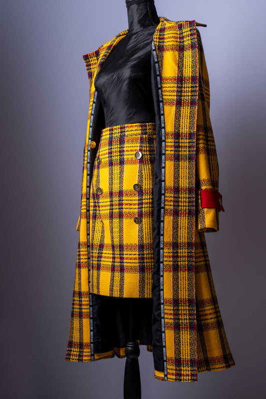 Damen-Minirock | Gelbes Karomuster | Doppelreiher-Stil | Tweed-Look