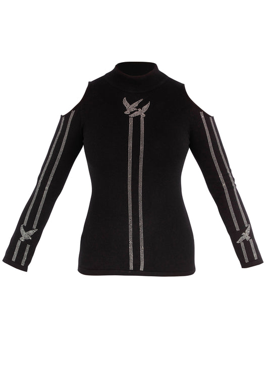 Damen ROLLKRAGEN Langarm Top Pullover Off-the-Shoulder