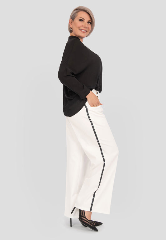 Colette – Weiße Bluse mit Jabot aus luxuriösem Baumwollsatin