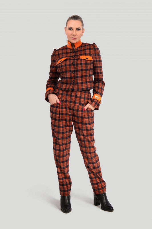 Elegante Damen Blazer-Jacke mit Karo-Muster