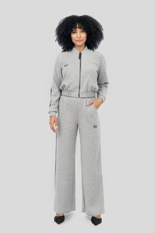 Elegante Soft Stoffhose mit weitem Bein & Strass-Streifen | Bequeme Wide Leg Hose