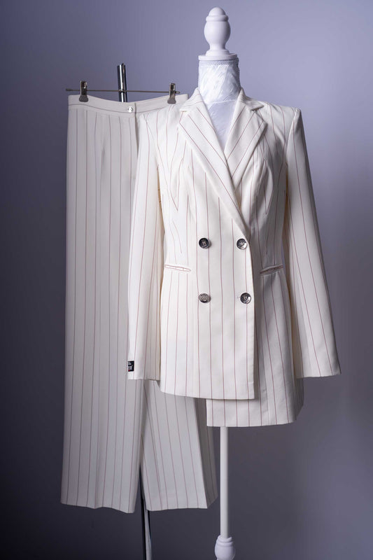 Eleganter Damen-Blazer in Weiß mit Nadelstreifen - Zweireihig & Tailliert