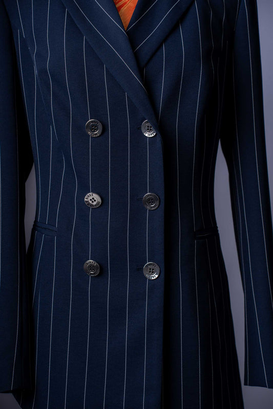 Eleganter Damen-Hosenanzug Nadelstreifen | Doppelreiher-Blazer | Business & Abendmode
