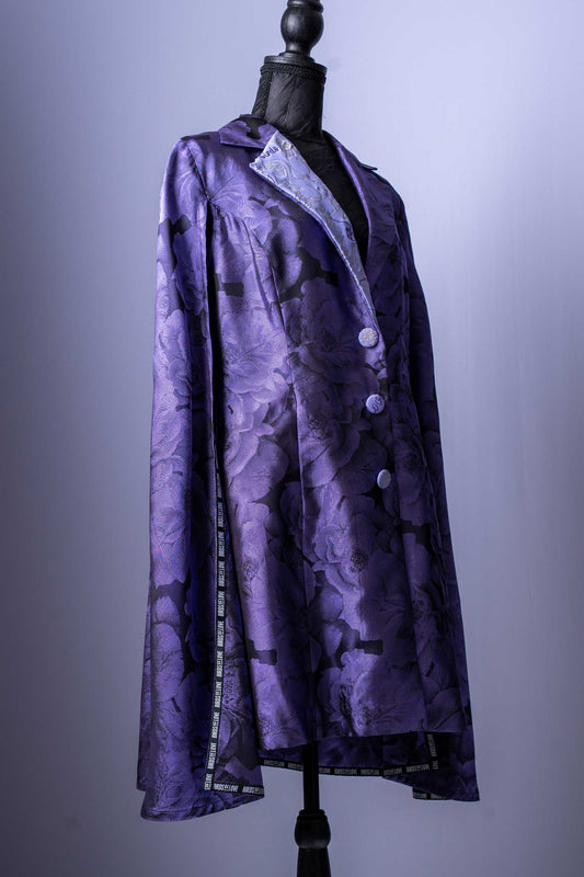 Eleganter Damen-Blazer | Violetter Cape-Stil | Jacquard mit Blumenmuster