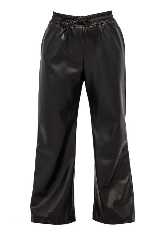 Elegante Lederimitathose mit weitem Bein & hohem Bund | Robuste Wide Leg Kunstlederhose