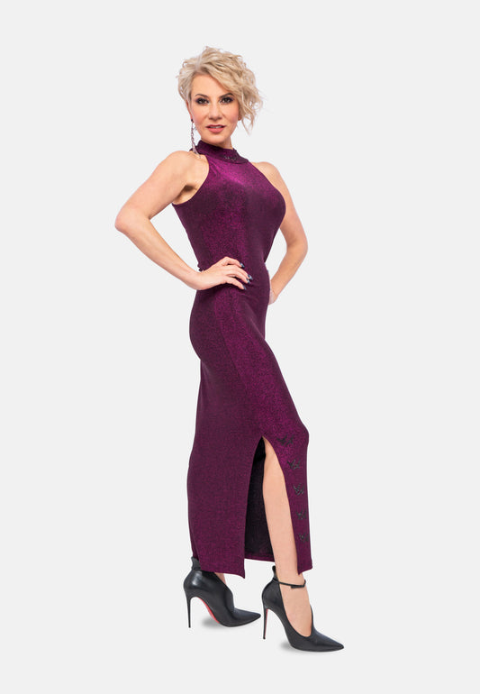 Fuchsia Berry Viskose-Jersey Abendkleid
