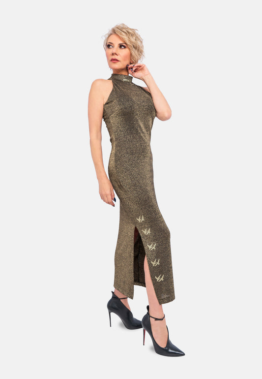 Gold Viskose-Jersey Kleid | Elegantes Abendkleid mit Lurex-Glanz