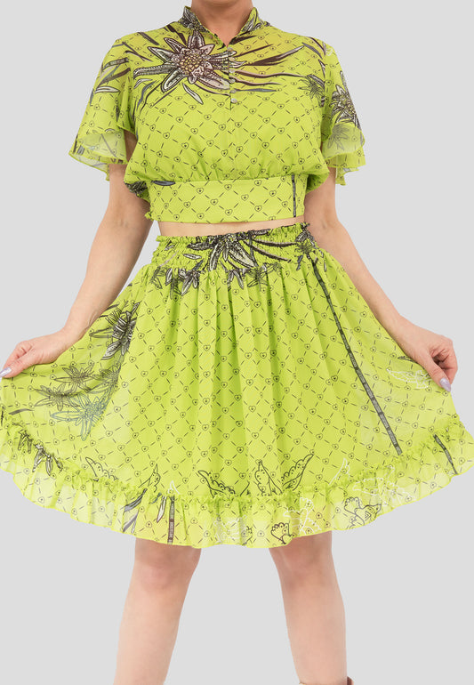 Kurzer Rock "Edelweiss" in Lime – Sommerlicher Minirock mit Blumendruck