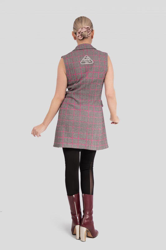 Kariertes Westenkleid aus 100% Wolle in Rosa