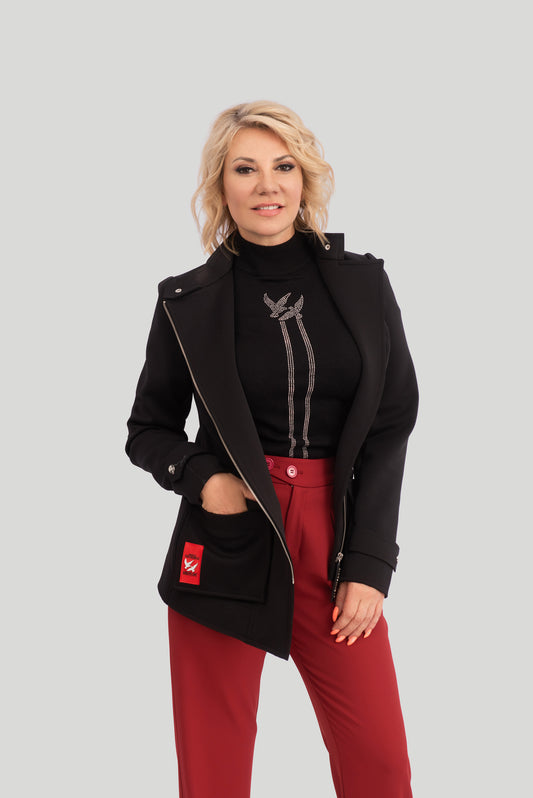 Mantel A-Linien asymmetrisch "FRIENDLY BIRD"