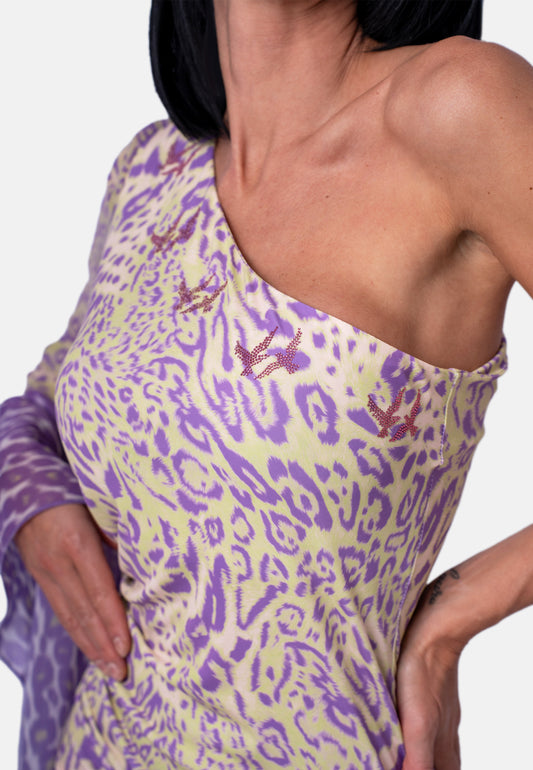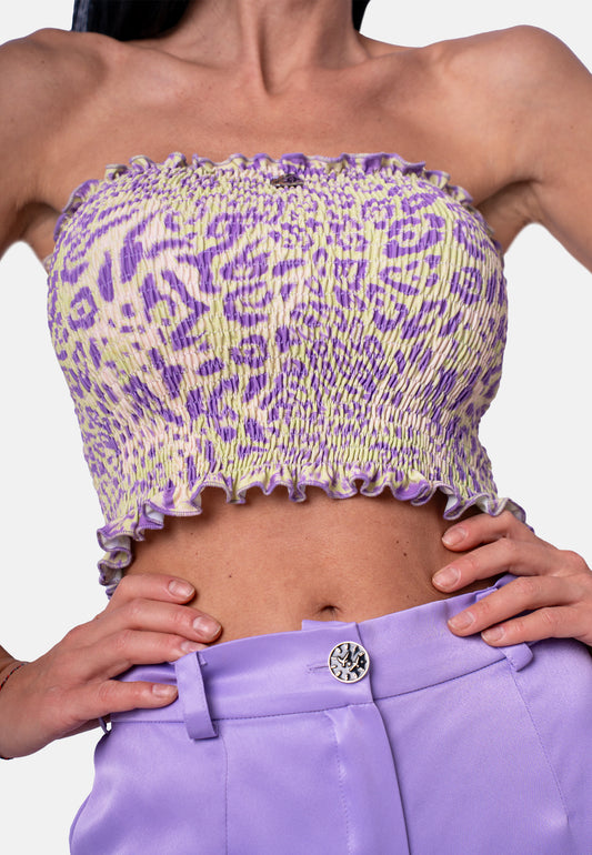 Schulterfreies Smock-Top im Animalprint in Flieder-Beige | Birds of Wild Grace by Birds of Love