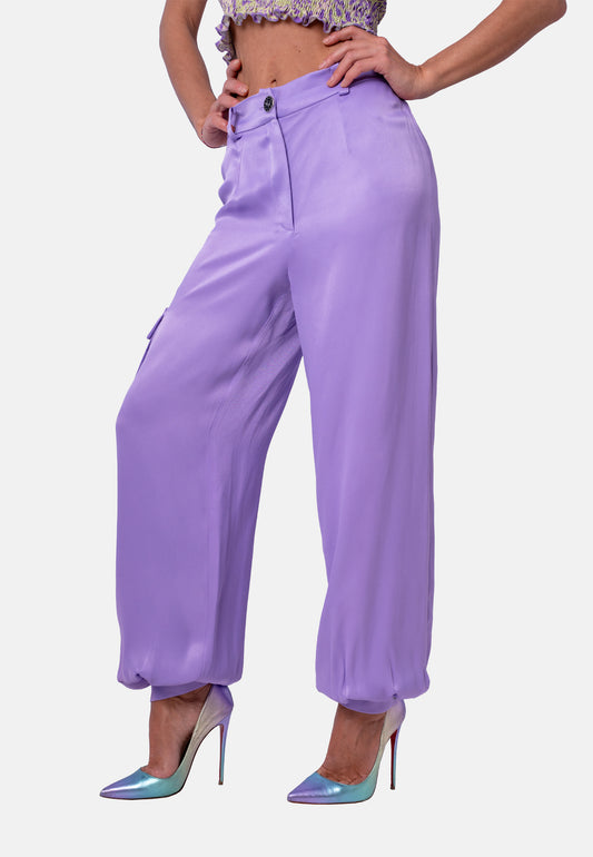 Fließende High-Waist-Hose mit weitem Bein in Flieder | Birds of Wild Grace by Birds of Love