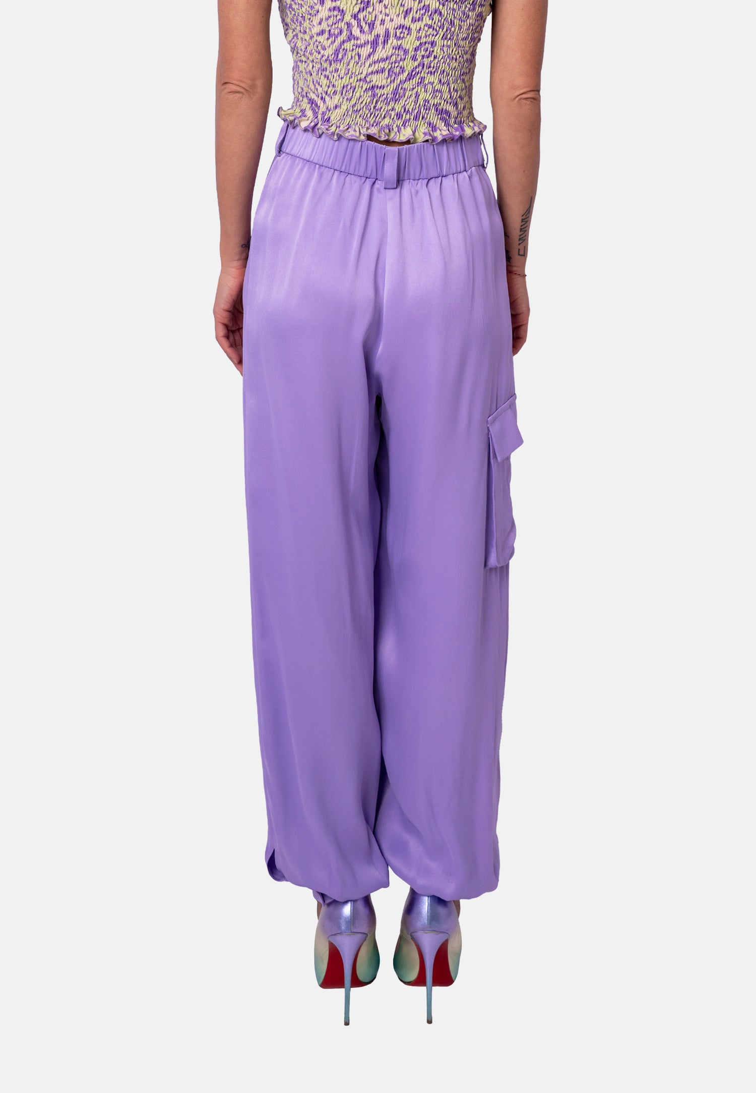 Diese elegante High-Waist-Hose in zartem Flieder vereint moderne Leichtigkeit mit femininer Raffinesse. Der hoch geschnittene Bund betont die Taille und sorgt für eine klare, schmeichelhafte Silhouette, während die weich fließende Linienführung dem Design eine mühelose Eleganz verleiht.