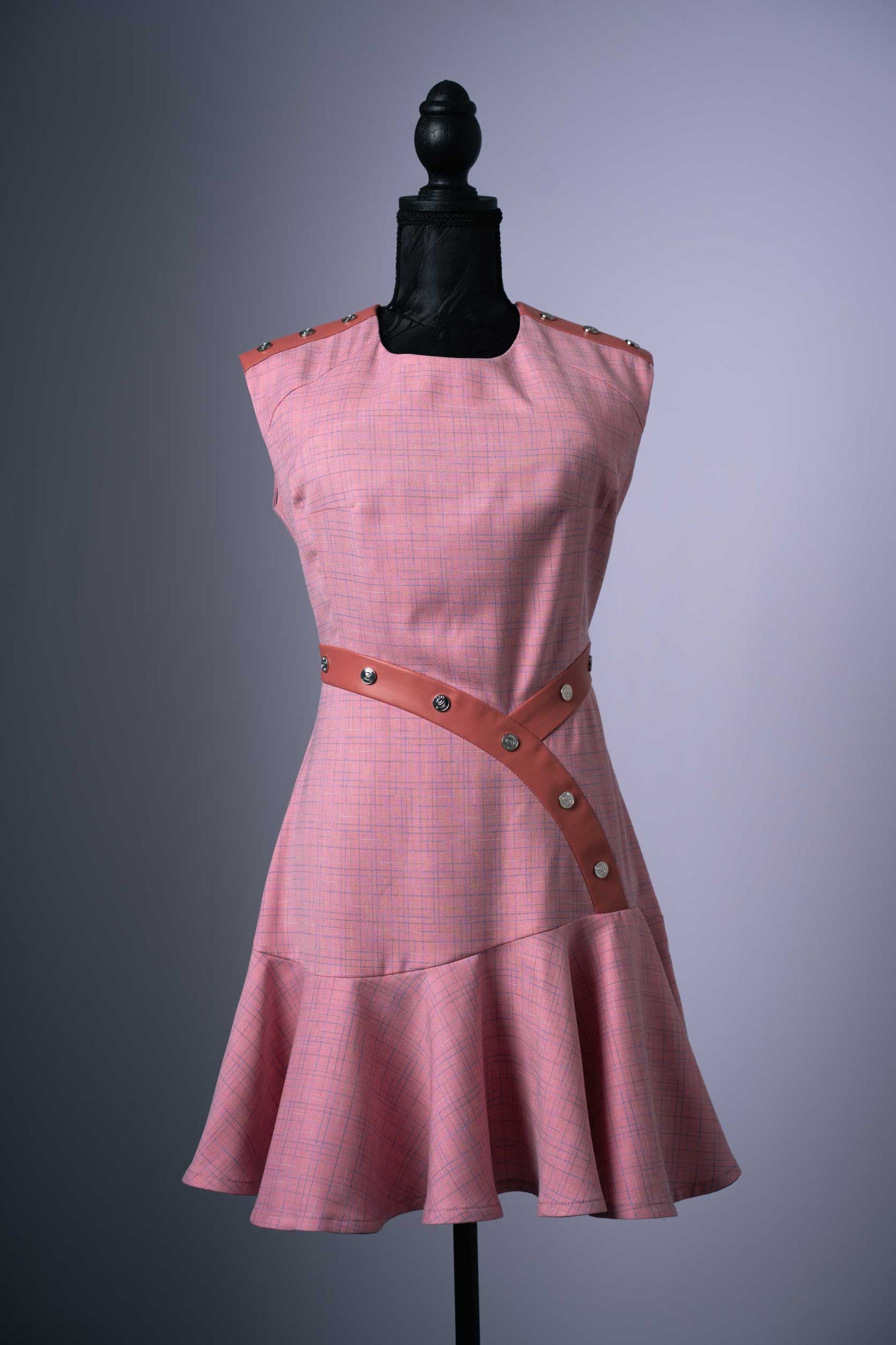 Set: Modisches Kleid mit Akzenten aus veganem Leder und Kurzjacke