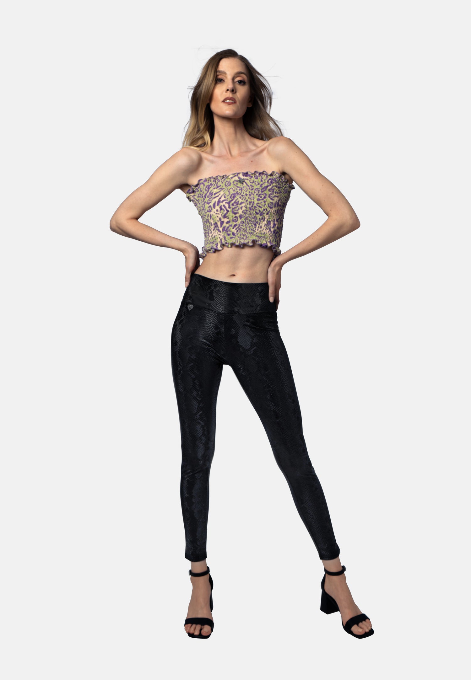 Diese enganliegenden Leggings aus hochwertigem, veganem Ökoleder mit edler Python-Prägung vereinen urbanen Chic mit einem Hauch Rebellion. Der dezente Glanz und das markante Muster sorgen für eine luxuriöse Optik, während das elastische Material Komfort und Bewegungsfreiheit garantiert.