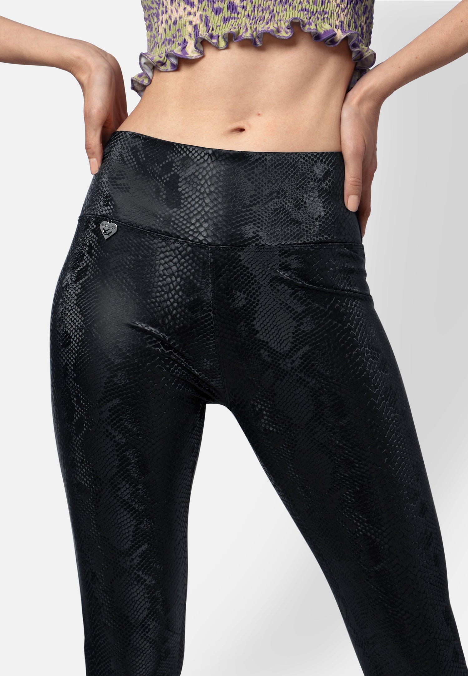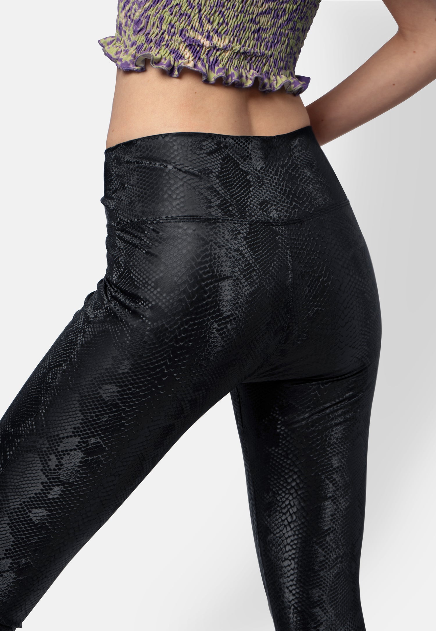 Schwarze Python-Leggings aus veganem Ökoleder – Handgemacht in der Schweiz